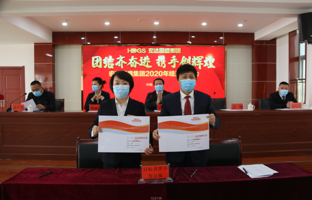 會上,集團(tuán)董事局主席吳宏國作《集團(tuán)2020年發(fā)展綱要》報告,安排部署2020年生產(chǎn)經(jīng)營工作。各企業(yè)(單位)、中心負(fù)責(zé)人及員工代表分別作表態(tài)發(fā)言。隨后,舉行了《目標(biāo)責(zé)任書》簽訂儀式。