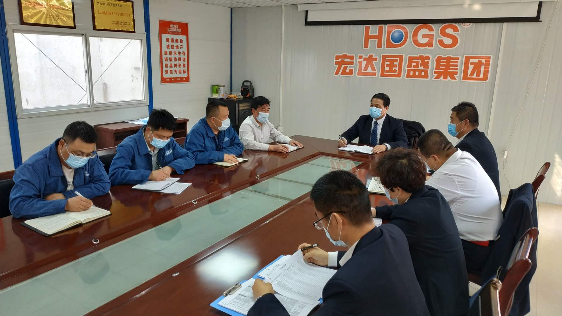 在對(duì)項(xiàng)目建設(shè)質(zhì)量安全、施工環(huán)境及建設(shè)進(jìn)度等多方面進(jìn)行詳細(xì)了解后,吳宏國(guó)主席強(qiáng)調(diào):項(xiàng)目建設(shè)單位要嚴(yán)格落實(shí)各級(jí)政府和集團(tuán)防疫要求,統(tǒng)籌安排,合理計(jì)劃,加強(qiáng)環(huán)境營(yíng)造和安全管理,卓有成效地在安全管理、生產(chǎn)經(jīng)營(yíng)等方面開(kāi)展工作。