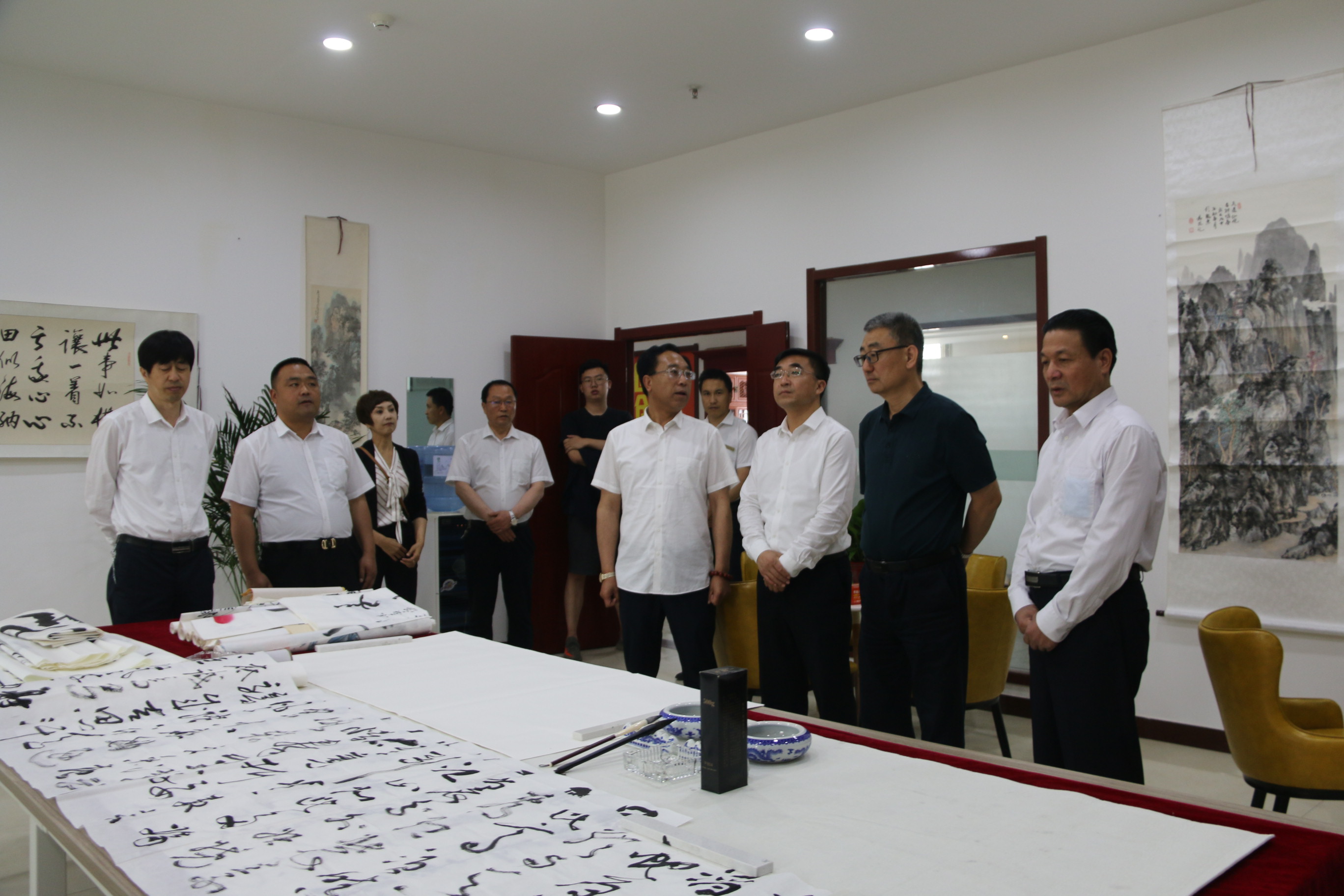 2022年6月10日,省文聯(lián)黨組書記、主席王登渤一行蒞臨宏達(dá)國(guó)盛文聯(lián)調(diào)研,市政府副市長(zhǎng)丁富強(qiáng),市文聯(lián)黨組副書記、主席馬宇龍,黨組成員、副主席范玉龍,市文聯(lián)二級(jí)調(diào)研員、市攝影家協(xié)會(huì)主席張森林陪同調(diào)研。宏達(dá)國(guó)盛集團(tuán)董事局主席吳宏國(guó)及集團(tuán)文聯(lián)相關(guān)負(fù)責(zé)人陪同檢查指導(dǎo)工作。