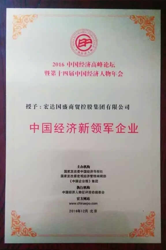 宏達國盛集團榮獲“2016中國經濟新領軍企業(yè)”殊榮稱號